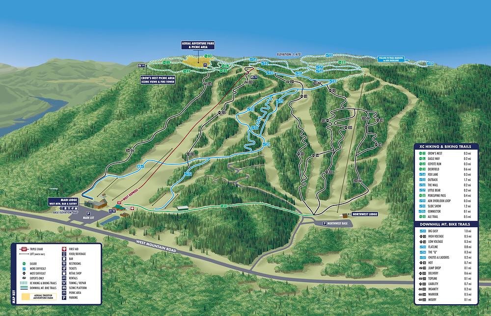 West Mountain is a 125-acre ski resort in Queensbury, New York, offering 31 trails, a vertical drop of 1,010 feet, and 126 skiable acres. The resort features a mix of easy, intermediate, and advanced trails, as well as a terrain park and snow tubing area. With 7 lifts, including a high-speed chairlift, West Mountain provides a range of skiing and snowboarding options for all skill levels. The resort also offers lessons, rentals, and a pro shop, as well as a bar and eatery.