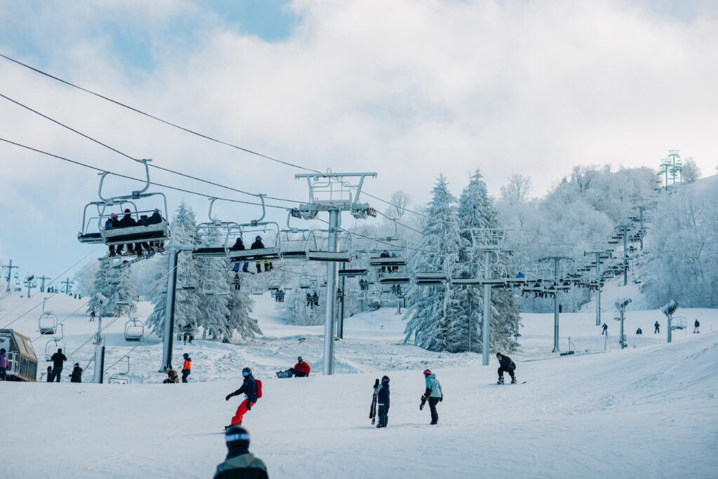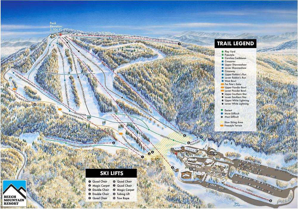 Beech Mountain Resort in North Carolina offers a year-round destination for family fun, with activities like skiing, snowboarding, tubing, mountain biking, and hiking. The resort boasts a summit elevation of 5,506 feet, making it the highest ski resort in the eastern United States. With 17 slopes on 98 skiable acres, there's something for every skill level. The resort also offers cozy cabins and stay-and-ski packages, as well as a winter wonderland of fun activities for families and groups.