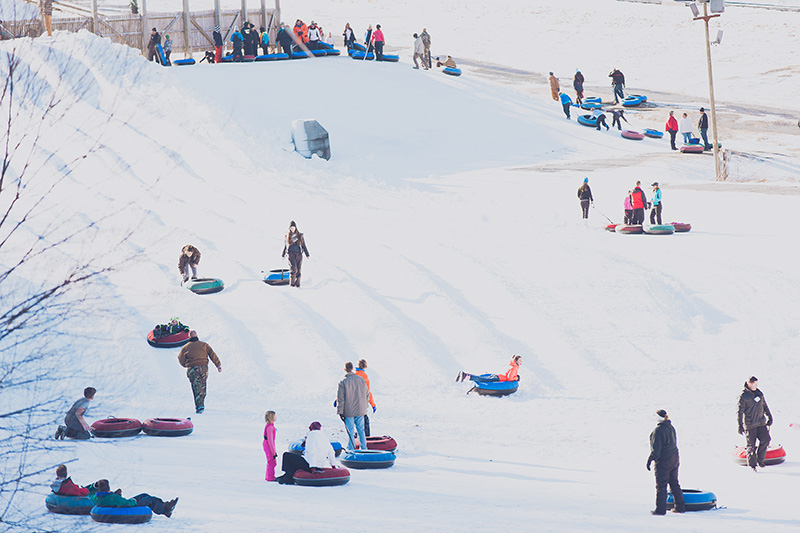 Hawksnest Tubing is the largest snow tubing park on the East Coast, featuring 30 lanes of tubing that span from 400 to 1000 feet long. The park offers four different tubing areas, moving carpet lifts, and seasonal ziplining. With its unique winter experience and family-friendly atmosphere, Hawksnest is a top destination for snow tubing in North Carolina.