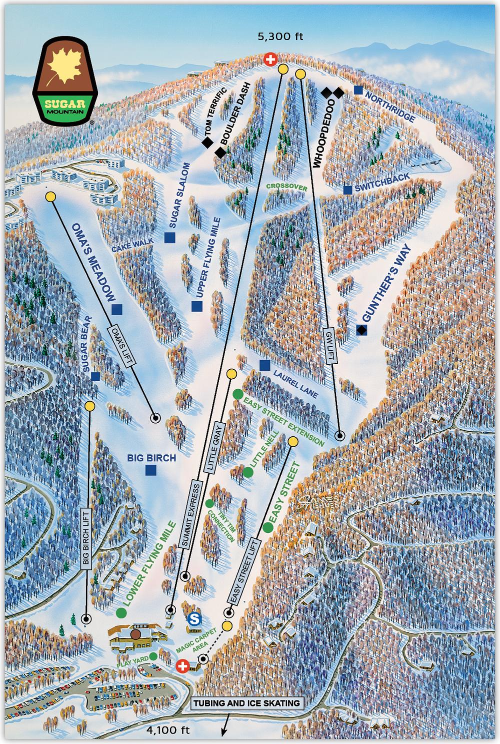 Sugar Mountain Resort in North Carolina offers 125 acres of skiable terrain with 20 trails and 8 lifts, making it the largest ski area in the state. The resort features a variety of slopes for all skill levels, including beginner, intermediate, and advanced terrain. Visitors can enjoy snow tubing, ice skating, and other winter activities. The resort also offers rentals, classes, and a food court. With its convenient location and range of amenities, Sugar Mountain Resort is a popular destination for winter sports enthusiasts.