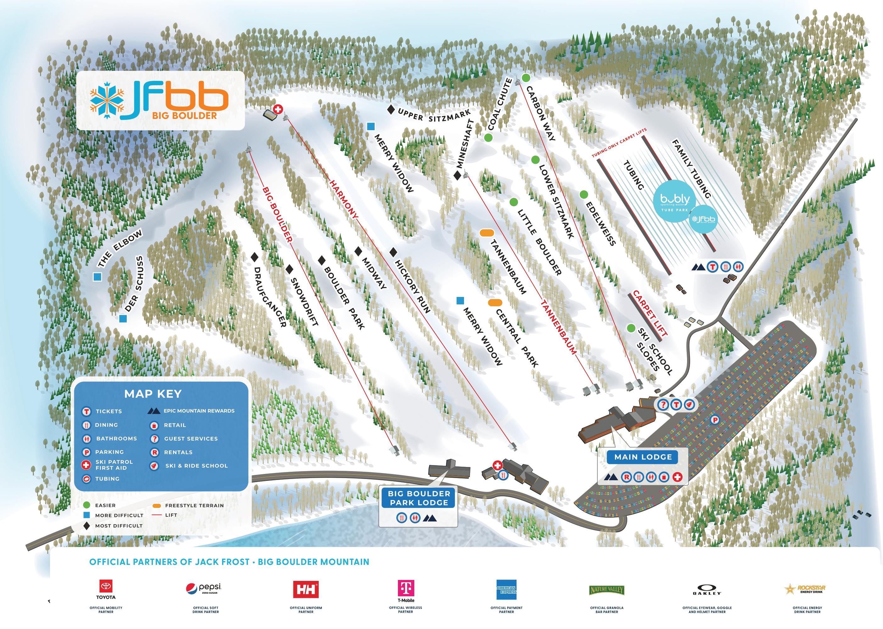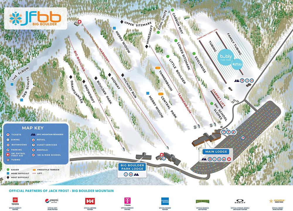 Big Boulder Ski Resort Area in Kidder Township, Pennsylvania, offers a premier winter experience with two mountains, Jack Frost and Big Boulder, featuring 16 trails, 5 terrain parks, and snow tubing lanes. The resort boasts a 475-foot vertical rise, making it an ideal destination for thrill-seekers and families alike. With a variety of outdoor activities, including skiing, snowboarding, and snow tubing, Big Boulder is a must-visit for winter enthusiasts.