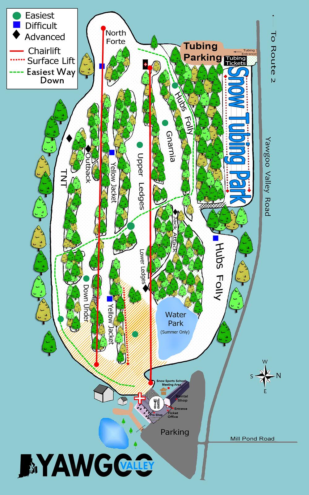 Here's a 50-100 word summary of Yawgoo Valley Ski Area: Located in Exeter, Rhode Island, Yawgoo Valley is the only surviving ski resort in the state. It offers 12 trails across 36 acres of skiable terrain, with 100% snowmaking capabilities and lighted night skiing. The resort also features a water park and snow tubing facility. With a small, quaint atmosphere, Yawgoo Valley is a great place to learn to ski or snowboard, with lessons and rentals available. It's a family-friendly destination that's perfect for a day trip from Providence or a fun winter getaway.