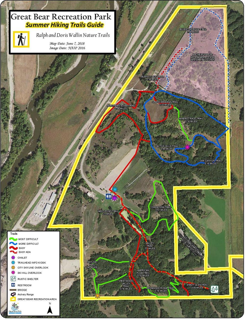 Great Bear Recreation Park is a 220-acre park in Sioux Falls, South Dakota, offering year-round activities just minutes from downtown. The park features 14 downhill trails, a quad chair lift, and a terrain park for skiing and snowboarding in the winter. In the summer, visitors can enjoy a 4-mile trail system, hiking, and cross-country skiing. The park also offers a tubing park with its own lift, a restaurant, and a variety of amenities. With its scenic views and diverse activities, Great Bear Recreation Park is a popular destination for outdoor enthusiasts.
