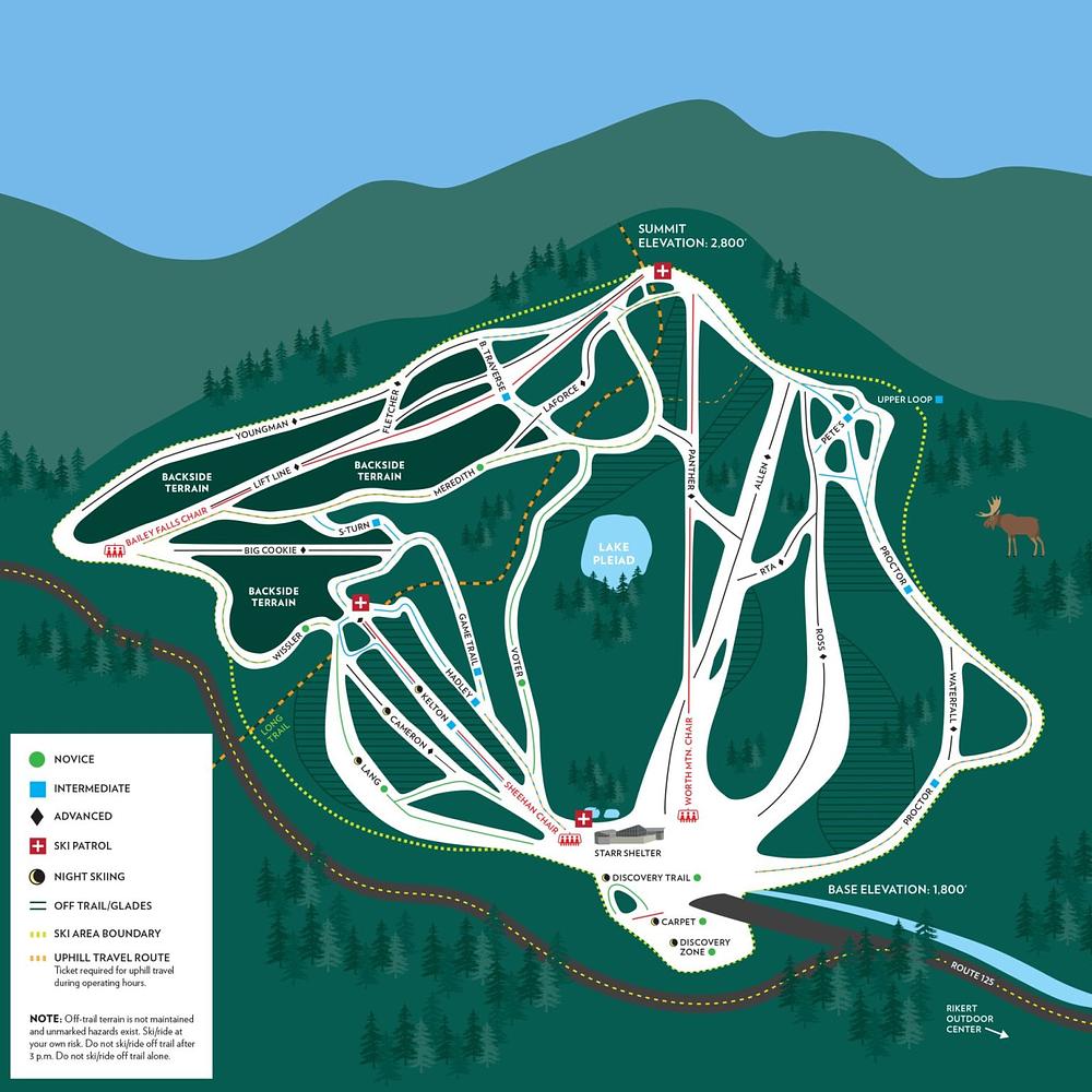 Middlebury College Snow Bowl is a ski area in Hancock, Vermont, owned and operated by Middlebury College since 1934. It features 17 trails, 3 lifts, and over 700 acres of skiable terrain, with a vertical drop of 1,000 feet. The resort offers a range of skiing and snowboarding experiences for all levels, including leafy off-trail slopes and equipment rental. With a family-friendly atmosphere and friendly staff, Middlebury Snow Bowl is a great destination for winter sports enthusiasts.