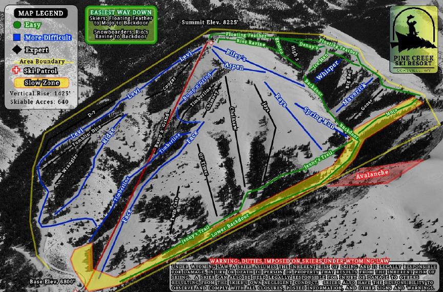 Pine Creek Ski Area in Wyoming offers a family-friendly experience with a relaxed atmosphere. The ski area boasts 30 trails, a 1,450-foot vertical drop, and 640 acres of skiable terrain. With a single lift serving the entire mountain, it's an old-school vibe that's perfect for beginners and intermediate skiers. The resort is open mid-December to early April and offers private mountain rentals on weekdays.