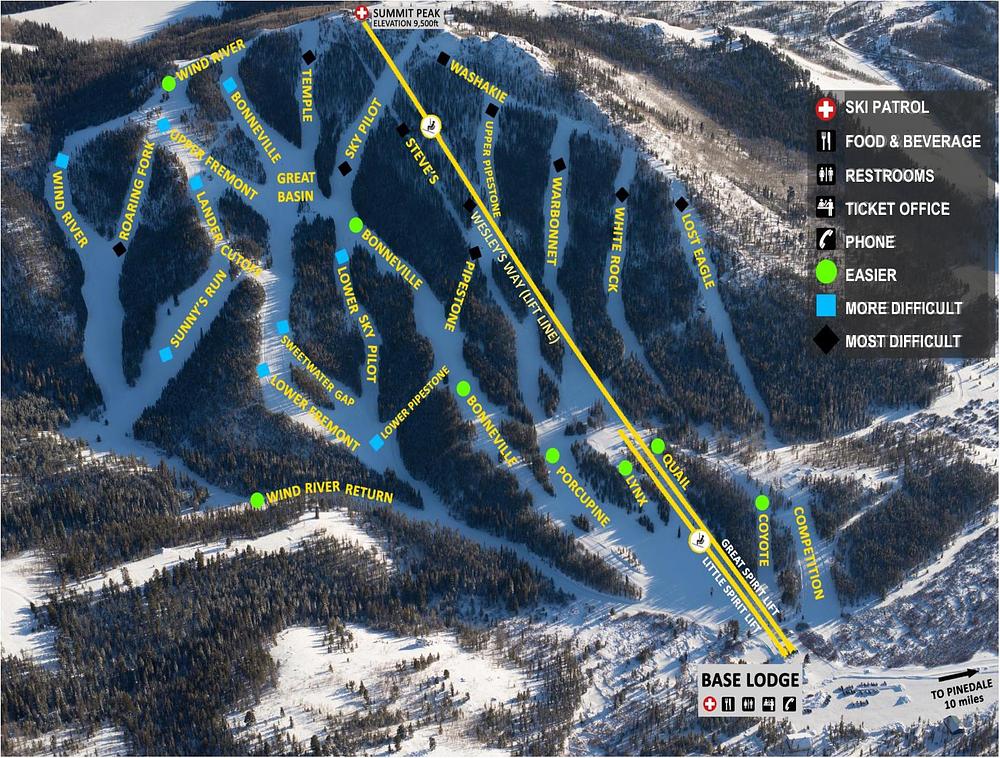 White Pine Resort is a locally-owned ski resort located 10 miles from Pinedale, Wyoming, in the beautiful Wind River Mountains. It offers 29 trails with 25% beginner, 45% intermediate, and 30% advanced terrain. The resort features downhill skiing and snowboarding, tubing, and a terrain park. With a focus on family-friendliness and affordability, White Pine Resort is a great option for those looking for a budget-friendly ski experience in Wyoming.